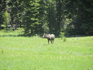 Then, as we continue on our way we see another moose! This one is bigger, a male with antlers. How lucky are we!!